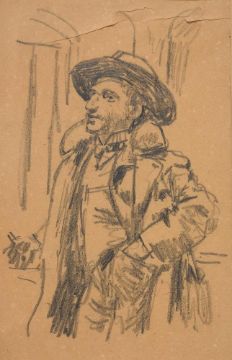 WALTER RICHARD SICKERT (BRITISH 1860-1942)THE GONDOLIERPencil29.5 x 19cm (11½ x 7¼ in.)Provenance: Roland, Browse and Delbanco, LondonExhibited:London, Roland, Browse and Delbanco, Sickert 1860-1942, March-April 1960, no. 38Brighton, Royal Pavilion, Sussex Festival Exhibition, Sickert, June 1962, no. 27Literature:Wendy Baron, Sickert, 1973, cat. 190Wendy Baron, Sickert Paintings and Drawings, New Haven and London, 2006, p. 300, no. 226.3 (illustrated)Condition Report: Executed on buff coloured wove paper. There are several noticeable tears to the paper along the upper edge. Further creasing and splitting to the paper throughout. Spots of bleaching scattered throughout the sheet, although not affecting the standing figure. Unexamined out of glazed frame. Condition Report Disclaimer