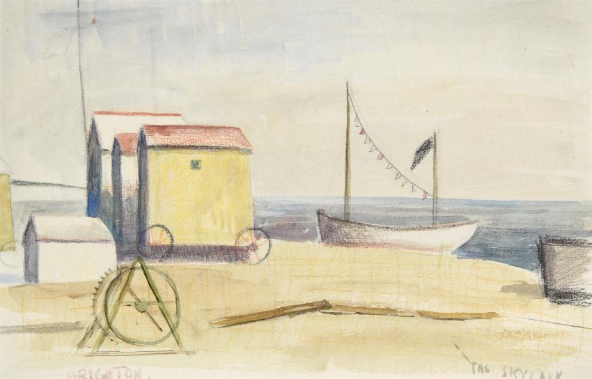 λ ELWIN HAWTHORNE (BRITISH 1905-1954)THE SKYLARK, BRIGHTON Coloured pencil and watercolourTitled (along lower edge)15.5 x 24cm (6 x 9¼ in.)Executed mid 1930s.Provenance:Estate of the ArtistThence by descent to the present owner