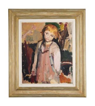 λ DAVID BOMBERG (BRITISH 1890-1957)PORTRAIT OF ETHEL Oil on canvas Signed (lower right); further signed, titled, and dated 1931 to stretcher (verso)61 x 51cm (24 x 20 in.)Provenance:J. Issacs, Private Collection Arthur A. Stambois, Private CollectionStanley Mann, Private Collection (purchased from the above in 1961)By descent to his wife, Eithne Maureen Mann (nee Milne) (1937-2018), Private Collection By descent to the present ownerExhibited:London, Bloomsbury Gallery, Exhibition of Sixty Imaginative Compositions, Spanish and Scottish Landscapes and Other Work by David Bomberg, November 1932, no. 35 (Ethel)Condition Report: The canvas has not been relined. Very light surface dirt throughout. Inspection under UV reveals a patch of retouching to the centre of Ethel's chest which corresponds to a small repaired tear approx. 1.5cm visible verso. Condition Report Disclaimer