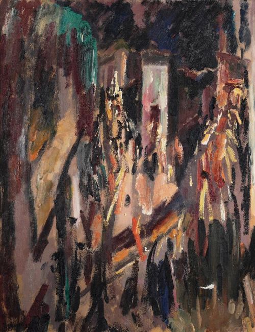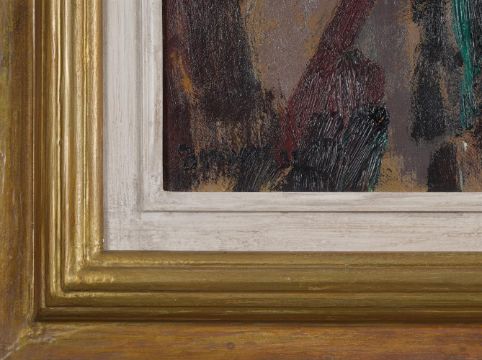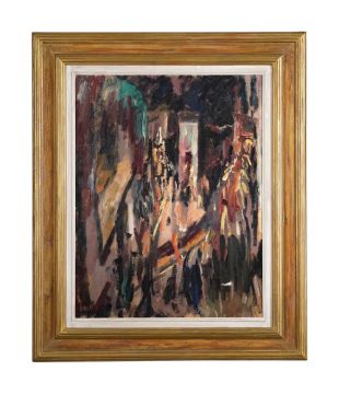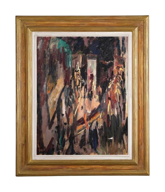 λ DAVID BOMBERG (BRITISH 1890-1957)VIRGIN OF PEACE IN PROCESSION, RONDA Oil on canvas Signed and dated 35 (lower left)76 x 59cm (29¾ x 23 in.)Provenance:Arthur A. Stambois, Private Collection (possibly purchased direct from the artist in 1936)Stanley Mann, Private Collection (purchased from the above in 1961)By descent to his wife, Eithne Maureen Mann (nee Milne), Private Collection (1937-2018)By descent to the present ownerFollowing Bomberg and Lilian's artistically fulfilling stay in Cuenca they moved South to the town of Ronda in November so that he could continue to work outside.The setting of this ancient town presented Bomberg with a spectacular opportunity to further explore the rugged geography and improbably built architectural structures balanced and wedged into this landscape. Bomberg conveyed this drama in increasingly vigorous and energetic brush strokes and it is this energy and immediacy that he has distilled into the present work. Bomberg became interested in the tight, cobbled streets of the medieval town, particularly after dark and in the present work he has depicted the Virgin of Peace being carried through the streets of Ronda during Holy Week. From the vantage point of their first-floor lodgings Bomberg witnessed this mystical nocturnal festival. Lilian and Dinora offered to hold lamps so that he could see more easily, but Bomberg dismissed them, preferring to work in darkness with only the flames from the processional torches to guide him. The resulting painting is charged with a visceral energy in which the people, the street and the torches become one dynamic whole yet inexplicably the painting maintains a structure and depth. Simultaneously abstract and representational. Indeed, a masterful example of what Bomberg himself described as the "Spirit in the Mass".Condition Report: The canvas has not been relined. There is a small area of L-shaped paint loss to the lower centre of the work, this is visible in the catalogue illustration. Inspection under UV reveals no evidence of restoration or repair. Subject to the above the work is otherwise in overall good condition. Condition Report Disclaimer