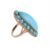 A TURQUOISE CLUSTER DRESS RINGThe central oval cabochon turquoise within a surround of circular cabochon turquoise, claw settings, to a polished shank Size/dimensions: finger size approximately LGross weight: 8.4 gramsCondition Report: The finger size is approximate, due to D shaped shank, some general wear, some variation to the turquoise colour to the border, the oval cabochon has some variation in tone. The shank has a faint stamp, it could be 750 Condition Report Disclaimer