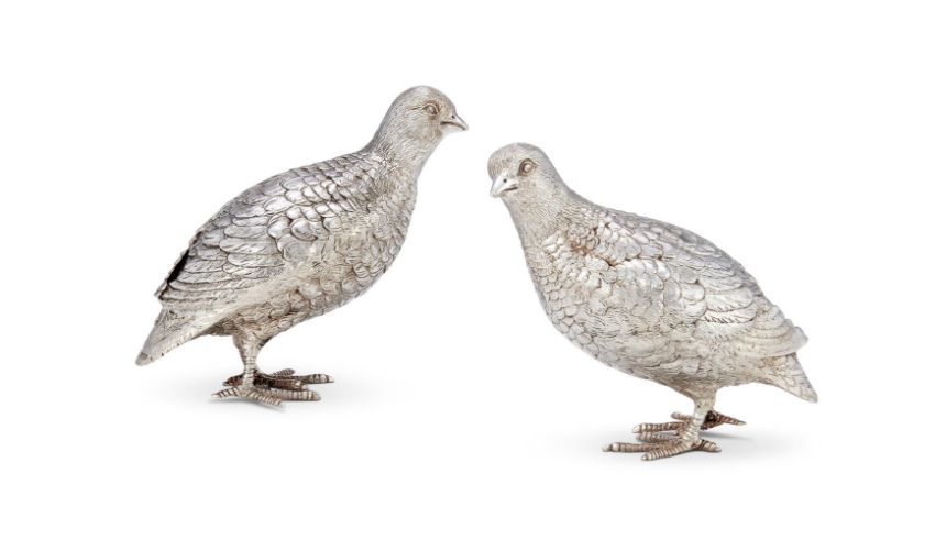 A PAIR OF SILVER MODELS OF GROUSEEDWARD BARNARD & SONS LTD., LONDON 197811.5cm (4 1/2in) long529g (17 oz) Condition Report: Marks are clearOne stands well, the other slightly wobblesLight scratches and wear commensurate with age and useCondition Report Disclaimer
