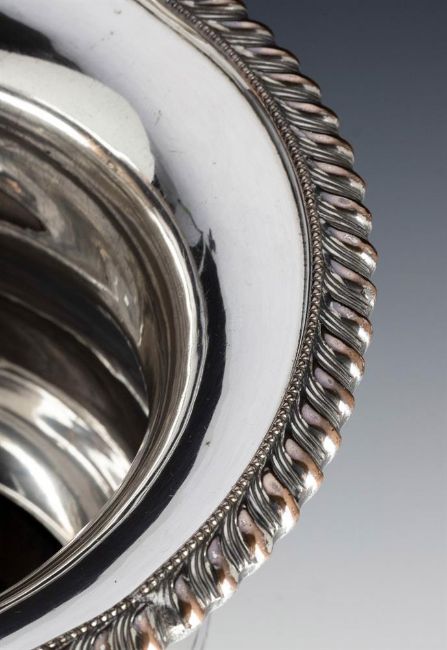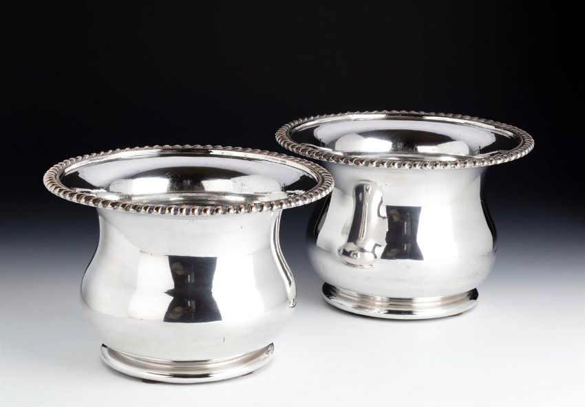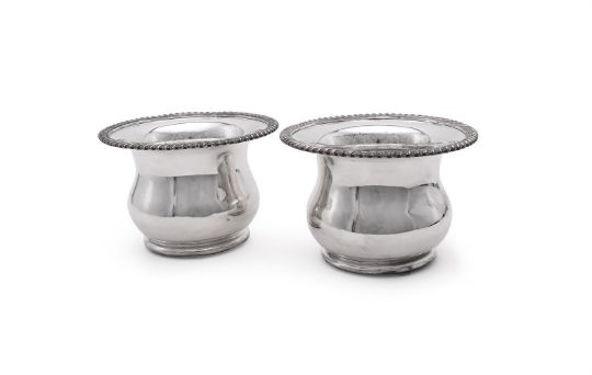 A PAIR OF SHEFFIELD PLATE WINE COASTERS19TH CENTURYOf compressed round form, with gadroon rims, turned wooden inset bases23cm diameter, 15.5cm highProvenance:Barnwell Manor, NorthamptonshireWindsor House AntiquesCondition Report: Wear to the plating on the bordersPlay to the wood basesBoth stand wellOne with a dent measuring 2cm long and with several other minor dentsThe other appears to be free from dentsNo engravingLosses to the wood bases beneathLight scratches and wear commensurate with age and use Condition Report Disclaimer