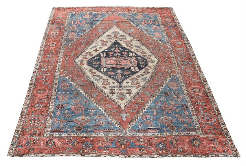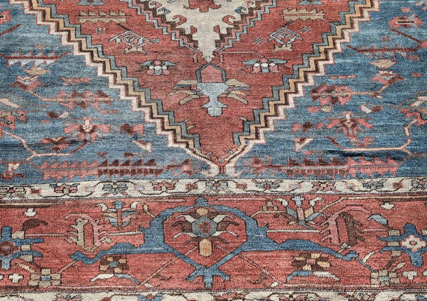 A BAKSHAISH CARPETapproximately 441 x 363cmCondition Report: Wear to carpet resulting in a generally short pile overall. Various areas of wear reveal underlying weft. Various old repairs to central field and borders (see images). Fringing has moved into the guard stripe at both ends. They are trimmed short and have the expected wear and fraying. Longest edges are later re-bound but are untidy. They have wear, sections of loss and some loose threads. Please refer to additional images for visual reference to condition. Condition Report Disclaimer