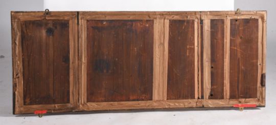 A GEORGE I GILTWOOD OVERMANTEL WALL MIRRORCIRCA 172062cm high, 160cm wideProvenance: Private Collection, BerkshireCondition Report: Marks, knocks, scratches and abrasions commensurate with age and use. Old splits, chips and losses.Frame re-gilded. The surface with various chips, losses and wear. Shrinkage cracks to frame. Some later metal bracing to back. Later tape to edges of backboards. Backboards have age but could possibly be old replacements. Mirror plates with the expected depletion, sparkle, losses and grey spots. Some old screw holes to back from previous fixtures. Please refer to additional images for visual reference to condition. Condition Report Disclaimer