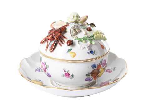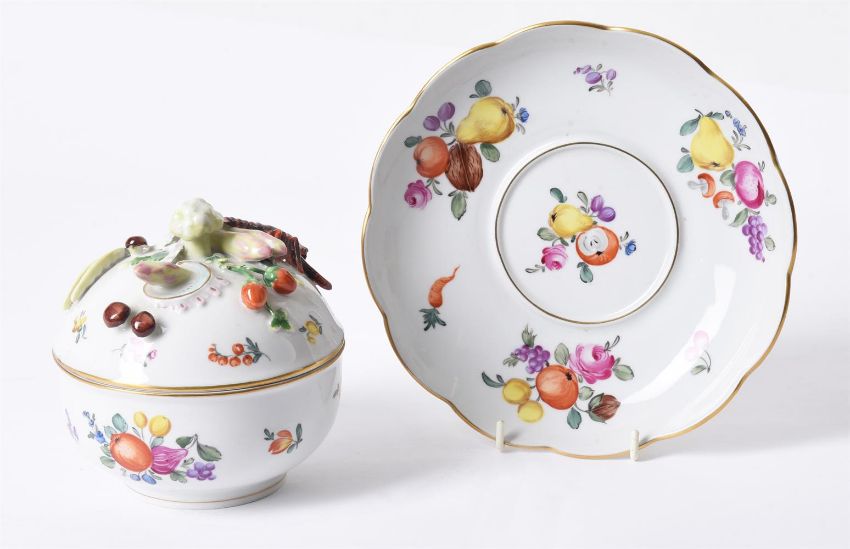 A DRESDEN BOWL, COVER, AND STAND