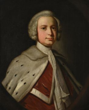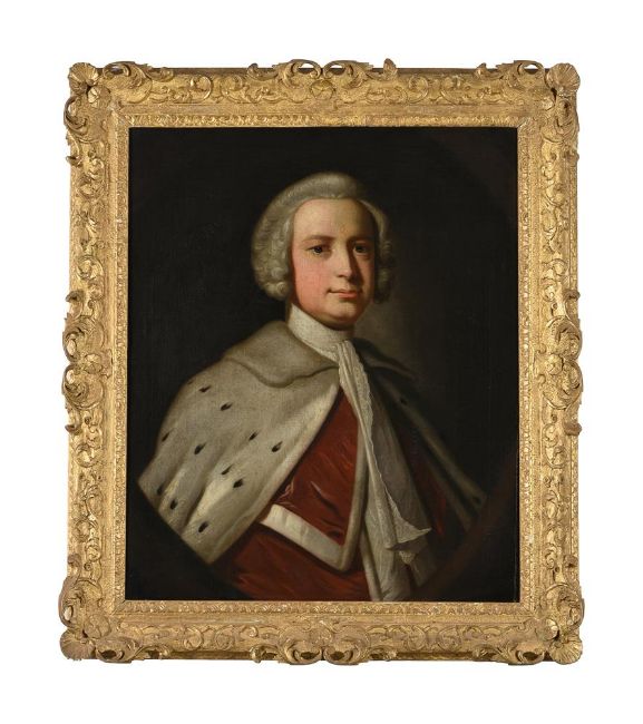 CIRCLE OF THOMAS HUDSON (BRITISH 1701-1779)PORTRAIT OF HENRY GREY 4TH EARL OF STAMFORD, WEARING PEERS ROBES, IN A PAINTED OVALOil on canvas74 x 61cm (29 x 24 in.)Provenance:The Wodehouse, Wombourne, StaffordshireAnother version by the studio of Thomas Hudson in the collection of Dunham Massey.Condition Report: The canvas has been relined. Fine surface cracking but the paint surface is stable. UV reveals scattered retouching across the image including in the sitter's face. A thick layer of dirt and discoloured varnish, which may cover older restorations. Condition Report Disclaimer