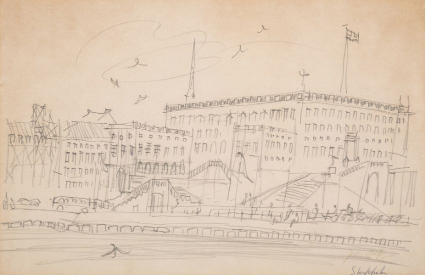 Pencil on wove paper, signed in pencil, titled in blue biro, image 260 x 413mm (10 1/8 x 16 1/4in)