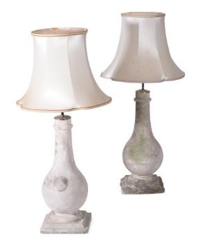 A PAIR OF STONE COMPOSITION BALUSTER TABLE LAMPSMODERN68cm including electrical fittingCondition Report: Please note that the lamp(s) in this lot have NOT been PAT tested and will need to be tested or re-wired by a qualified electrician before use by the purchaser  Condition Report Disclaimer