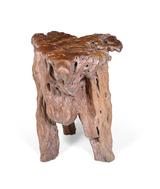 A RUSTIC TABLE FORMED FROM A TREE ROOT19TH/ 20TH CENTURY Of naturalistic form, with a flat cut brown painted top and three supports 58.5cm high, 45cm diameterCondition Report: Marks, knocks, scratches, abrasions consistent with age and useAs catalogued, of naturalistic form with a painted flat top for use as a tableThe rootwork lower portion in rustic condition, un polished, the undersides of the legs cut to allow for a stable table Please see additional images for visual reference to conditionPlease refer to additional images for visual reference to condition Condition Report Disclaimer