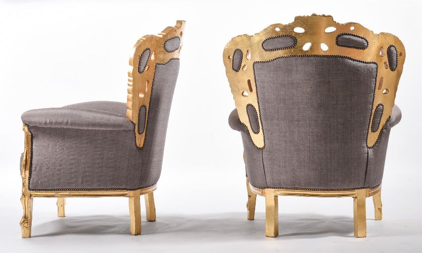 A PAIR OF GILTWOOD UPHOLSTERED ARMCHAIRS IN FRENCH TASTELATE 20TH CENTURY118cm high