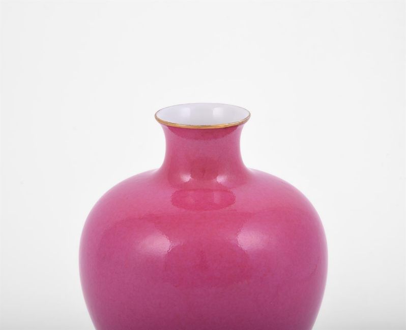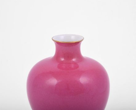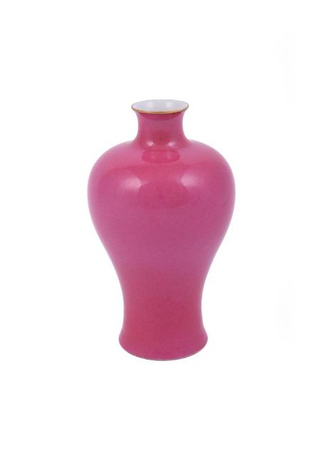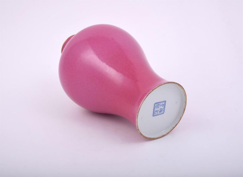 A Chinese pink glazed meiping vase, mark of Yongzheng but Republican, 19cm high民国 "雍正年制"款粉红釉蛋壳瓷梅瓶Condition Report: minor wear to the gildingCondition Report Disclaimer