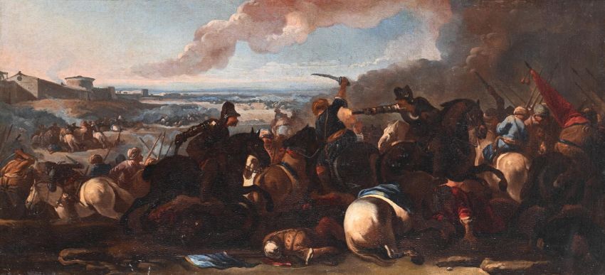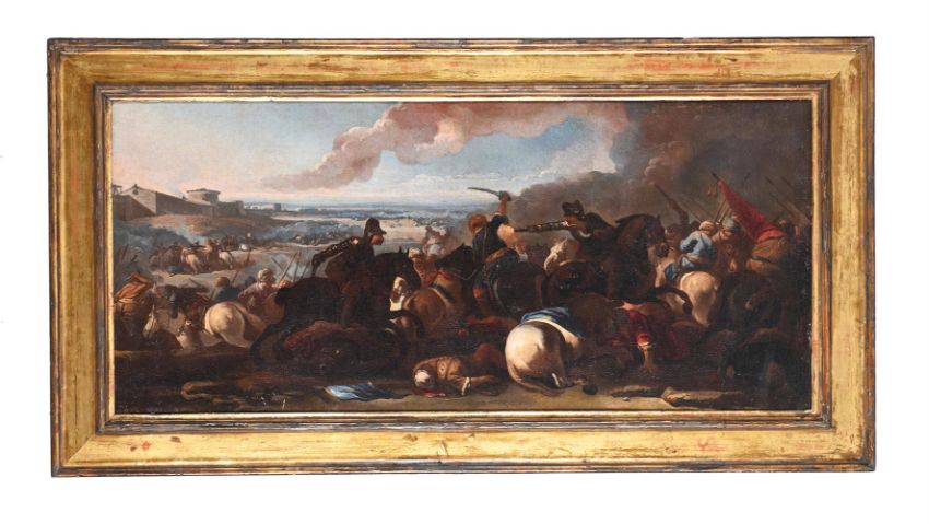 FOLLOWER OF PHILIPS WOUWERMAN A CAVALRY SKIRMISHOil on canvas49 x 110cm (19¼ x 43¼ in.)