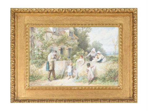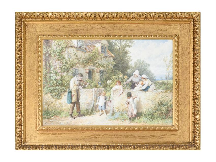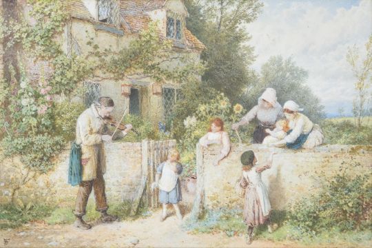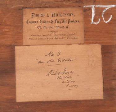 MYLES BIRKET FOSTER (BRITISH 1825-1899)AN OLD FIDDLERWatercolour and bodycolourSigned with a monogram (lower left) and inscribed 'No. 3 / An old fiddler' (on a label on the reverse)30 x 44.5cm (11¾ x 17½ in.)Provenance:Sale, Sotheby's, London, 7 June 1995, lot 22Private collection, UKCondition Report: The colour is perhaps a little down, but true to the image online and in the catalogue. There is a small amount of brown spotting to the upper right corner. Otherwise the work appears to be in good condition. Unexamined out of glazed frame.Condition Report Disclaimer