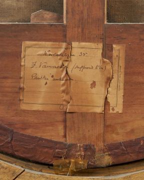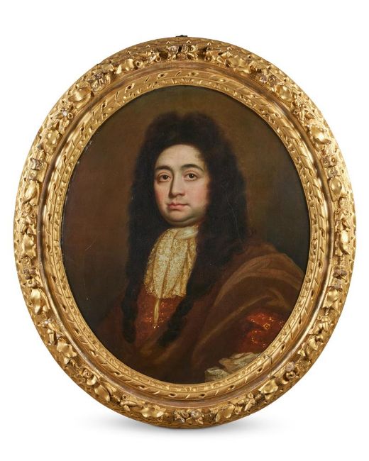 ENGLISH SCHOOL (CIRCA 1680)PORTRAIT OF FRANCIS VANACKER, HALF-LENGTH, IN AN EMBROIDERED CLOAK; AND PORTRAIT OF HIS WIFE, CORNELIA BOEVEY, IN A MAUVE DRESSOil on canvas, a pair73 x 61cm (28½ x 24 in.) oval (2)Provenance:Possibly at the sitter's home, Erith Manor, Kent Probably inherited by Catherina Boevey in 1702 and thence by descent Sold Flaxley Abbey, Gloucestershire, Bruton, Knowles & Co., 29 March-5th April 1960, lot 1323Bought by Mr and Mrs Frederick Baden-Watkins and thence by descent at Flaxley Abbey Literature:A Brief Account of the Antiquities, Family Pictures and Other Notable Articles at Flaxley Abbey, co. Gloucester, Bristol, 1912, pp. 11, no. 7Francis Vanacker (d.1686, aged 38) was High Sheriff of Kent and a descendant of a London merchant family. He married Cornelia Boevey (d.1702) in 1671, who was the only daughter of the merchant, lawyer and philosopher James Boevey (1622-1696) by his second wife Isabella de Visscher. Upon Francis' death in 1686 Cornelia remarried to William Bateman of Clifton. She died at Erith Manor in 1702 without issue making it likely that this pair of portraits was inherited by her sister-in-law Catherina, owing to the early death of her brother William in 1692. Condition Report: Both with surface dirt and discolouration of the varnish, both canvases have been relined and show abrasions around the edges from contact with the frame. The male portrait with some bulging of the paint below his hair on the right, as well as a repaired tear in the same area. UV also reveals retouched craquelure in the sitter's face. The female portrait with several small repairs, visible under UV light, mainly to the left of the figure in the background, as well as some retouched craquelure in her face and neck. Condition Report Disclaimer