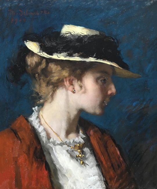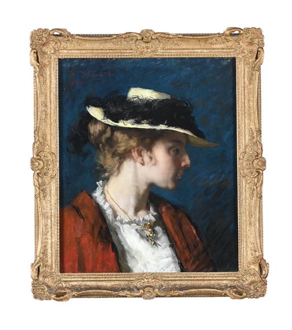 THERESE SCHWARTZE (DUTCH 1851-1918)PORTRAIT OF THE ARTIST'S SISTER, THE POETESS M. SCHWARTZEPastelSigned and dated '1900' (upper left)58 x 47.5cm (22¾ x 18½ in.)Exhibited:Southport, Atkinson Art Gallery, Festival Exhibition of Local Art Treasures, June-September 1951, no. 84Condition Report: Some areas of surface mould. Some undulation of the sheet. Unexamined out of glazed frame. Condition Report Disclaimer