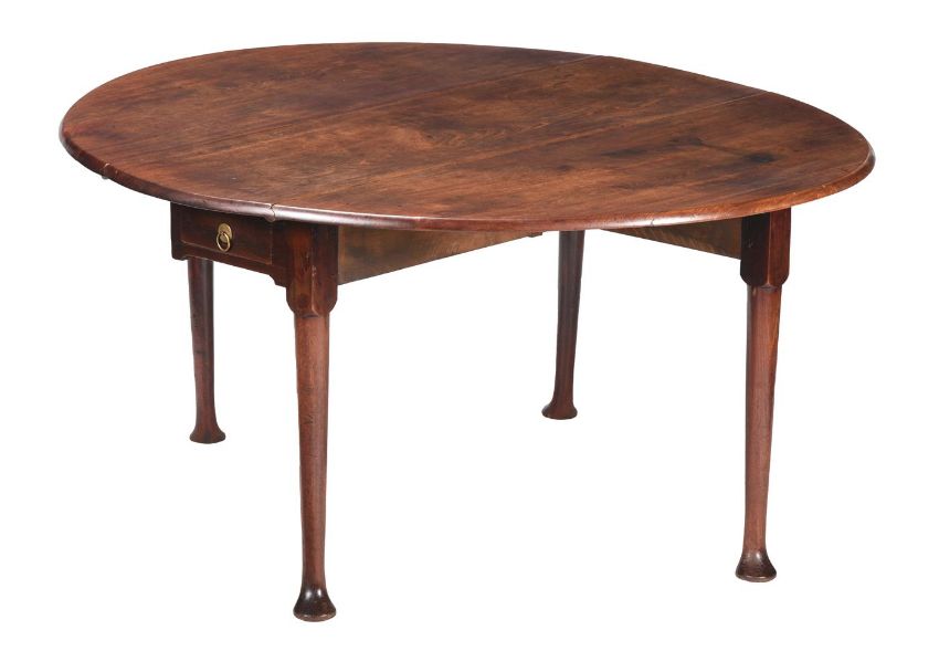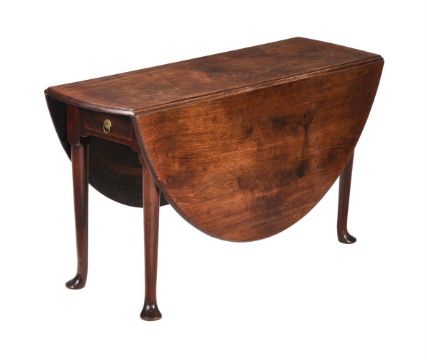 A MAHOGANY OVAL TWIN DROP LEAF DINING TABLE MID 18TH CENTURY On club legs 71.5cm high the top 138 x 152cm (open) Provenance: The Fulwood CollectionCondition Report: With marks, knocks, scratches, abrasions consistent with age and useSplits and cracks, chips and losses, stains and marks to the topThe drawer handle is possibly original Please see additional images for visual reference to conditionAdditional measurements:The central top surface is 40cm wide when the table top is closedCondition Report Disclaimer