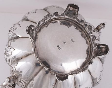 Y A VICTORIAN MATCHED SILVER THREE PIECE LOBED CIRCULAR TEA SET THE TEA POT BY JOSEPH ANGELL I & JOSEPH ANGELL II, LONDON 1842, THE CREAM JUG AND SUGAR BOWL BY WILLIAM MOULSON, LONDON 1841 The teapot with ivory warming bands to the scroll handle, a foliate finial to the domed cover, the body embossed with floral sprays within roundels and two vacant reserves, on four foliate scroll feet 29cm (11 1/2in) long 1413g (45.4 oz) grossPlease note Dreweatts have applied for a de minimis exemption licence for the ivory in this lotRef: WPM9ARLU Y Indicates that this lot may be subject to CITES regulations when exported. The import of lots that are subject to CITES regulations are banned in certain countries. Please check your country's import regulations before bidding.  Condition Report: Tea pot - Marks are clear, play to the hinge, cover sits well, splits to the ivory, handle tight, minor dents to the vacant reserves, rubbing to the decoration, no engravingCream jug - Marks are clear, dent to one vacant reserves, slightly wobbles, no engraving, rubbing to the decorationSugar bowl - Marks are clear, badly wobbles, dent to one of the flowered roundels, no engraving, rubbing to the decorationAll with light scratches and wear commensurate with age and useCondition Report Disclaimer