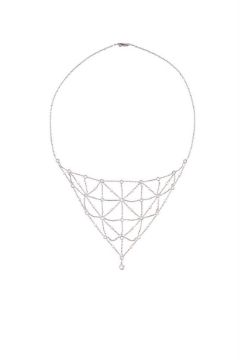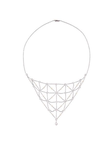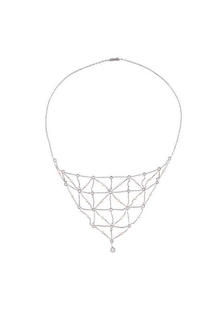 A DIAMOND AND CULTURED PEARL NECKLACE The central belcher link lattice bib panel set with brilliant cut diamonds and cultured pearls, approximately 1.08 carats total, to a belcher link necklace, to box clasp Size/dimensions: 41.3cm long Gross weight: 9.2 grams Condition Report: The diamonds are bright and lively, the clasp is in good working order. Condition Report Disclaimer