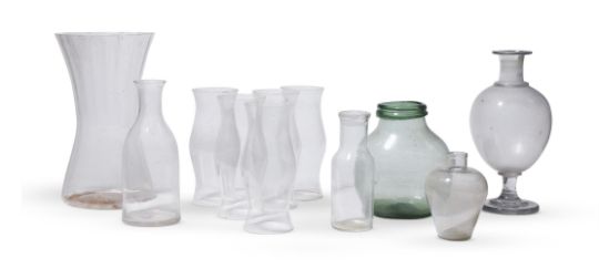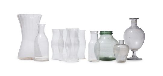 A SELECTION OF GLASSWARE VARIOUS DATES 19TH AND 20TH CENTURIES Including a pedestal jar; a tapered vase assorted storm shades and other items the tallest 45cm high, 26cm diameter Condition Report: No serious damage issues noted.Condition Report Disclaimer