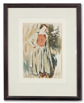 λ EDNA CLARKE HALL (BRITISH 1879-1979) FIGURE IN A GREEN DRESS Watercolour 25.5 x 17.5cm (10 x 6¾ in.)Provenance: Abbott and Holder, London