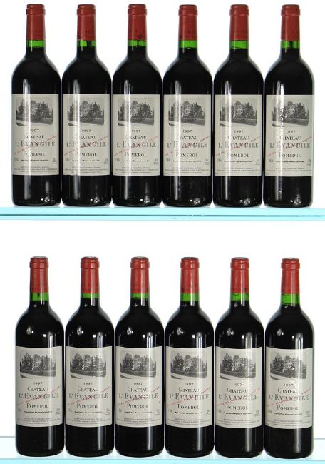 1997 Chateau L'Evangile, Pomerol WC 12x75cl 1 label slightly marked, 1 slightly nicked at bottom edge, packed in wooden case.