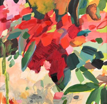λ SHONA BARR (SCOTTISH B. 1965) CRIMSON AZALEA Oil on canvas Signed and dated 1995 to artist's label (verso) 79 x 79cm (31 x 31 in.) Condition Report: No obvious condition issues. Appears to be in good original condition. Condition Report Disclaimer