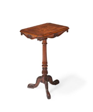 AN EARLY VICTORIAN WALNUT OCCASIONAL TABLE CIRCA 1850, IN THE MANNER OF GILLOWS 74cm high, 46cm wide, 35cm deep Condition Report: Marks, knocks, scratches, abrasions consistent with age and useEach of the veneers with inset timber to the centre of the burr in an X-shape Cleaned and polished appearance, The stem and top firmly attached and solid and stable overallOne foot with a slither of timber to the underside Please see additional images for visual reference to conditionCondition Report Disclaimer