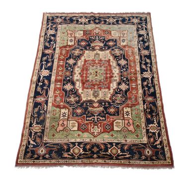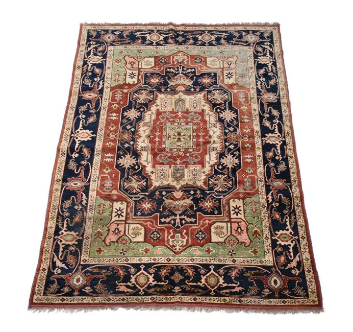 A KAZAK CARPET Approximately 317 x 224cm Condition Report: Signs of age and use in a domestic setting, wear to pile, The fringing to the short sides with some uneveness, also areas where it is 'eating' into the pileSome colour variation Please see additional images for visual reference to conditionCondition Report Disclaimer