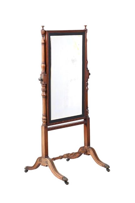 A REGENCY MAHOGANY CHEVAL MIRROR CIRCA 1820 162cm high, 76cm wide, 66cm deep