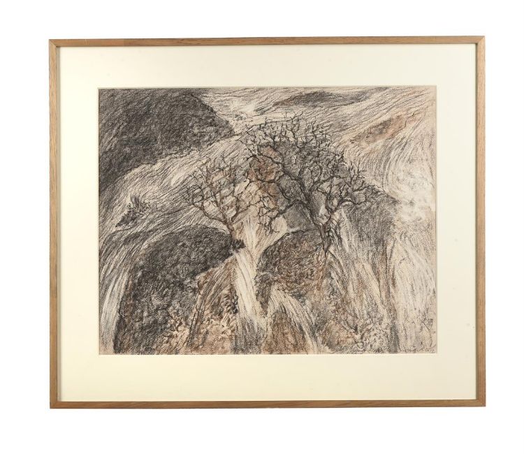 JOHN HUBBARD (AMERICAN 1931-2017) WATERFALL NO. 10, 2007 Charcoal Signed, dated '07 and inscribed 10 (lower right) 55 x 67cm (21½ x 26¼ in.) Provenance: Private Collection, Lady Caroline Conran  Please note measurements do not include frame unless otherwise stated. Condition Report: Unexamined out of glazed frame. Appears to be in good original condition. Please note Dreweatts is not liable for damage to picture frames.Condition Report Disclaimer