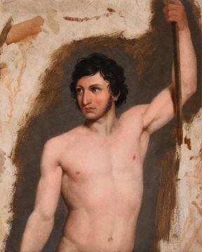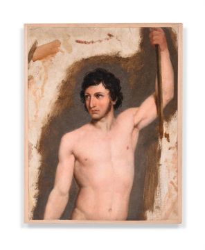 CIRCLE OF ANDREA APPIANI (ITALIAN 1754 - 1817) MALE NUDE Oil on paper laid to canvas 26 x 20.5cm (10 x 8 in.) Condition Report: Three repaired tears (each approx. 1.5cm) to the upper edge of the sheet. Inspection under UV reveals fine areas of retouching and infilling throughout. Condition Report Disclaimer