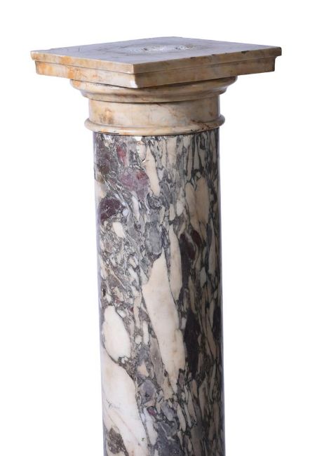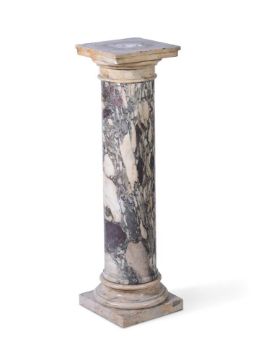 AN ITALIAN BRECCIA AFRICANA MARBLE PEDESTAL 18TH/19TH CENTURY 110.5cm high, top 30.5cm square, base 31cm square Condition Report: Wear, marks, knocks and scratches as per age, handling, use, and cleaning. Possibly Breccia Viola- slight purple tints visible. Top with previous mounting holes, dirty surface and corner and some edge losses, some scuffs to stem, plinth base with edge chips, old repair to one corner. Please see additional images for visual references to condition which form part of this condition report. All lots are available for inspection and Condition Reports are available on request. However, all lots are of an age and type which means that they may not be in perfect condition and should be viewed by prospective bidders; please refer to Condition 6 of the Conditions of Business for Buyers. This is particularly true for garden related items. We must advise you that we are not professional restorers or conservators and we do not provide any guarantee or warranty as to a lot's condition. Accordingly, it is recommended that prospective buyers inspect lots or have their advisors do so and satisfy themselves as to condition and accuracy of description All lots are offered for sale "as viewed" and subject to the applicable Conditions of Business for Buyer's condition, which are set out in the sale catalogue and are available on request. Buyers are reminded that liability for loss and damage transfers to the buyer from the fall of the hammer. Whilst the majority of lots will remain in their location until collected, we can accept no responsibility for any damage which may occur, even in the event of Dreweatts staff assisting carriers during collection. Condition Report Disclaimer