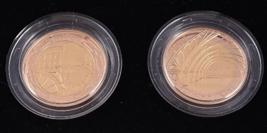 Reverses Brunel portrait and Paddington station, wt. 15.97g each, in Royal Mint case of issue with certificate no.0610 and 1265 (S K20, K21). As issued.