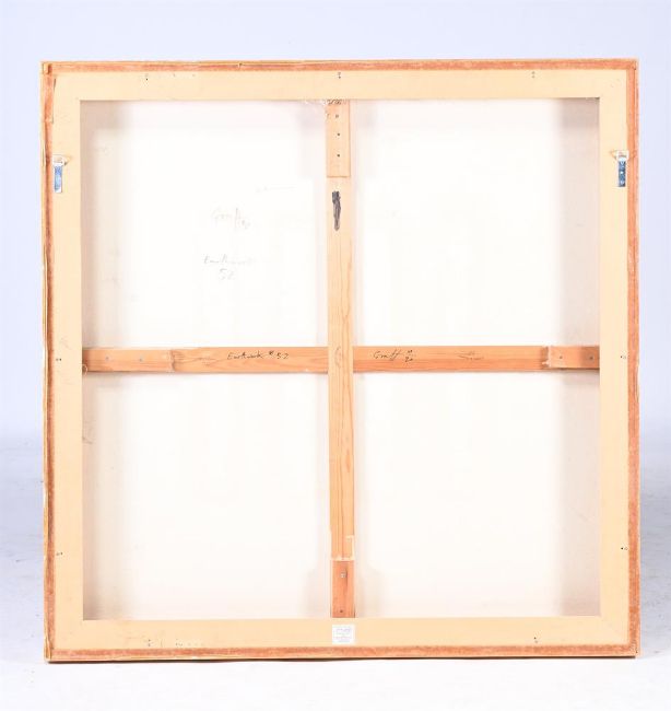 λ STEPHANE GRAFF (FRENCH/BRITISH B. 1965) EARTHWORK 52 Mixed media on canvas Signed, titled and dated 90 (to stretcher verso) further signed and dated 90 (verso) 122 x 122cm (48 x 48 in.)Please note measurements do not include the frame unless otherwise stated. Condition Report: Please note Dreweatts are not liable for damage to frames or mounts.Condition Report Disclaimer