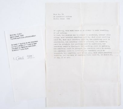 He continues in the accompanying letter to write, 'If anything, this work began as an attempt to make something, if not nothing. If that, the problem was to attempt to establish, amongst other things, what material something could be, what shape something could be, what size something could be, how something could be constructed, how something could be positioned [...] and how many of something there could be, or should be, if any, if at all.'
