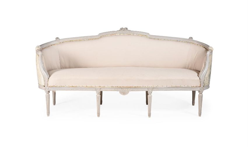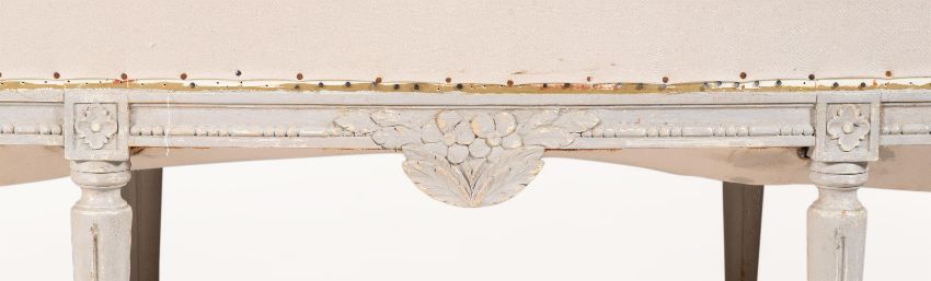 A GREY PAINTED STYLE CANAPE IN LOUIS XVI STYLE EARLY 20TH CENTURY 93cm high, 198cm wide, 60cm deep