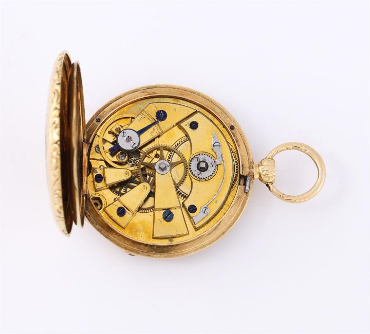 A FRENCH GOLD AND ENAMEL OPEN FACE POCKET WATCH, NO. 12919