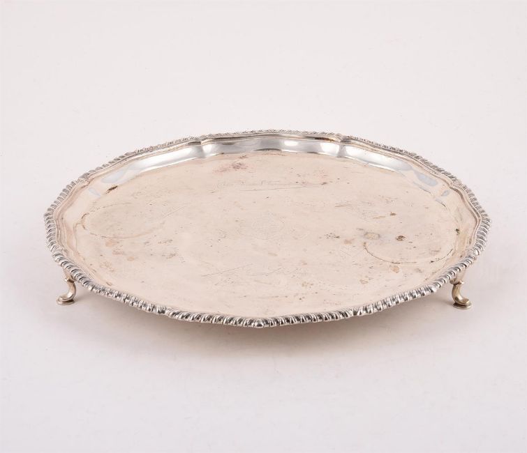A SILVER SHAPED CIRCULAR SALVER