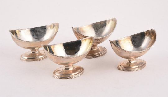 A MATCHED SET OF FOUR GEORGE III SILVER NAVETTE SALTS