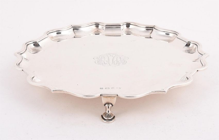 A SILVER SHAPED CIRCULAR SALVER