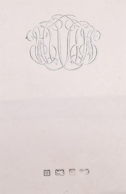 With a raised moulded border. engraved with a monogram and on three stepped pad feet