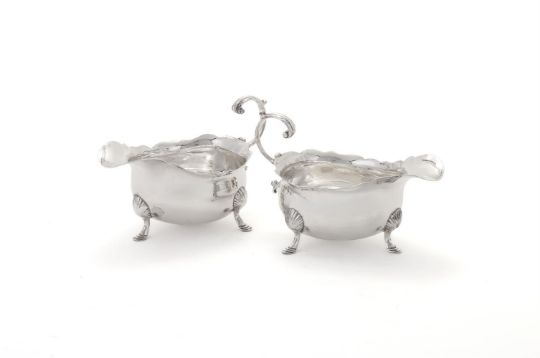 A PAIR OF GEORGE II SILVER OVAL SAUCE BOATS