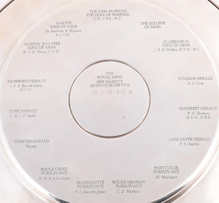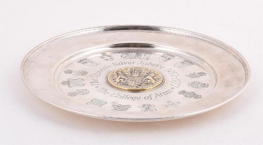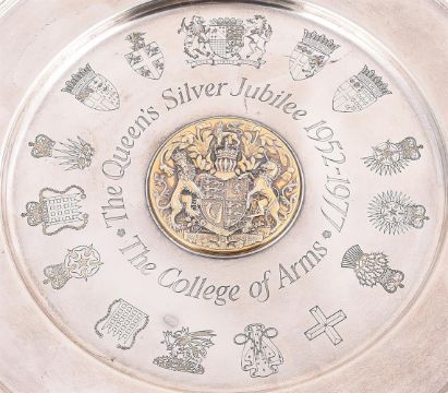 Commemorating the Queen's silver jubilee, with a chased silver gilt Royal coat of arms