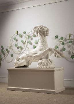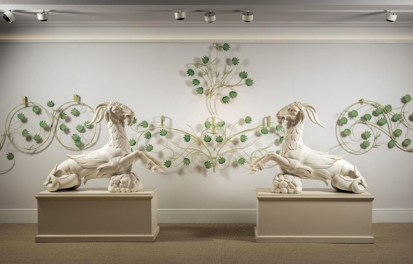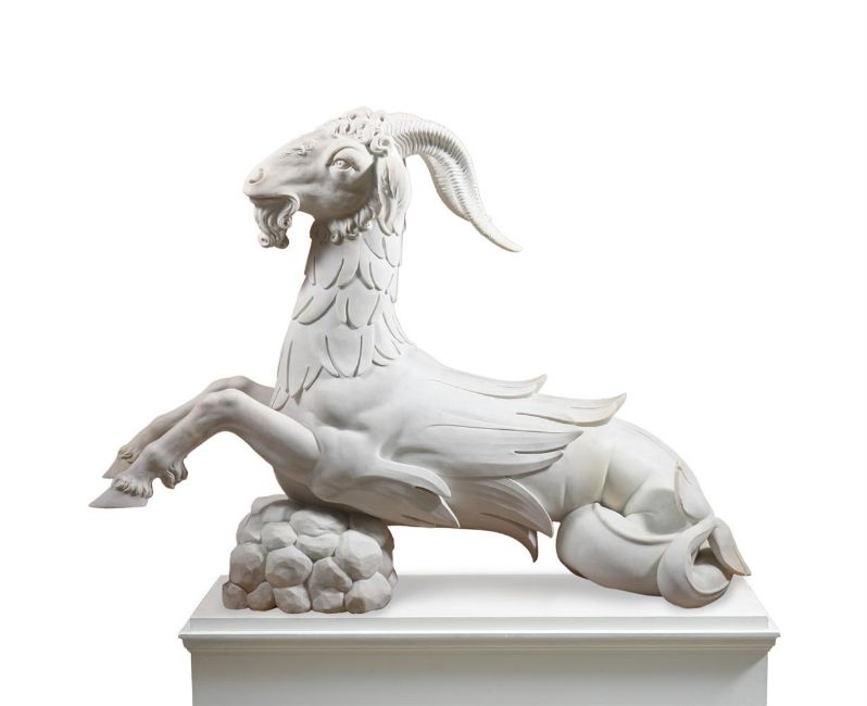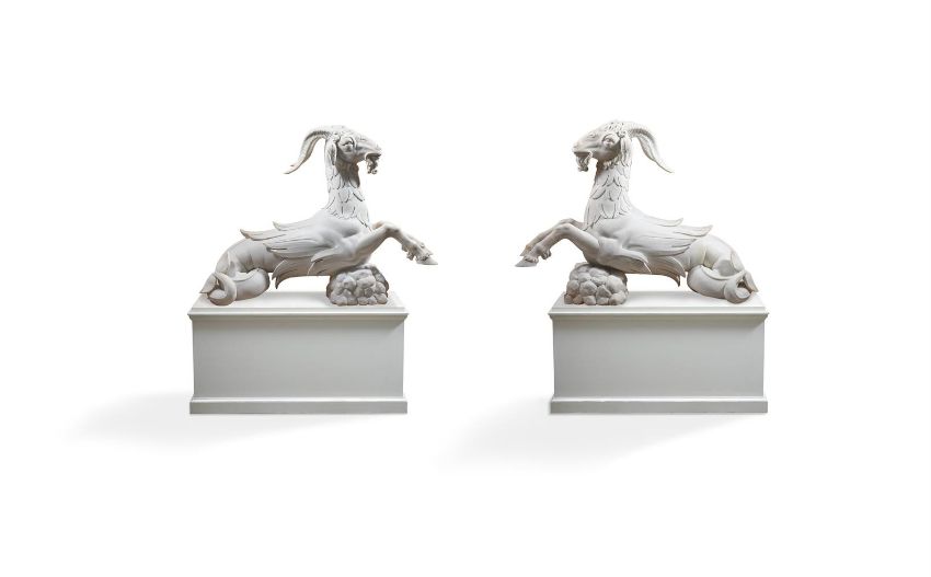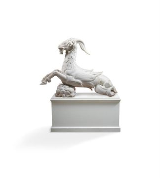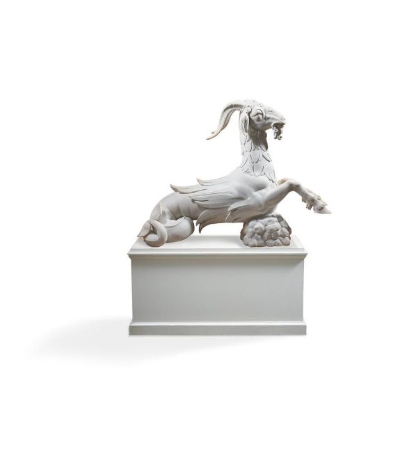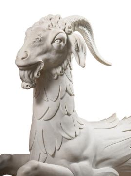 ATTRIBUTED INNOCENZO SPINAZZI (1726-1798) ITALIAN, FLORENCE, CA. 1775 PAIR OF CAPRICORNS Marble each 115 by 154cm Provenance: Possibly commissioned by Grand Duke Pietro Leopoldo (later Emperor Leopold II) for a scheme in the Boboli Gardens, Florence With Giovanni Pratesi Antiquario, 2011 These outstanding marble Capricorns are exceptional for their size, quality and condition, as well as for the rarity of the subject matter in Italian sculpture. The model originates in 16th century Florence, created to decorate monumental gate posts in the Boboli Gardens, the famous park connected to the Palazzo Pitti. Attributed to a sculptor from the circle of Bartolomeo Ammannati (1511-1592), they flank the entrance to the Isola, a part of the gardens that has Giambologna's magisterial Oceanus fountain at its centre. The Capricorn was an important emblem for Cosimo I de' Medici (1519-1574), for whom the star sign was ascendant, and its use here may have been an homage to Lorenzo il Magnifico, the late 15th century Medici ruler, who was born on 1 January 1449, making him a Capricorn. By the middle of the 18th century, the Boboli Gardens had fallen into disrepair. With the arrival of the Lorrainese Grand Duke Pietro Leopoldo (later Emperor Leopold II) at Florence in 1770, a programme to restore the Gardens was initiated. The commission given to Innocenzo Spinazzi is documented between 1775-1777. The Roman sculptor was required to repair, copy and restore the sixteenth century Capricorns, which were eventually reinstalled in the Boboli Gardens. The Capricorns are the crowning achievement of Spinazzi's work in the Boboli Gardens project and this aspect of his career has been studied in depth by Prof. Gabriele Capecchi, who has written extensively on the Boboli Gardens and has authored a volume dedicated to these Capricorns that details all the related documents and to which the present text is indebted. Capecchi has published a series of documents issued by the Scrittoio della Fortezza e Fabbriche in the 1770s which relate to the programme of restoration in the Boboli Gardens. A document dated 27 January 1776 describes the Vasca detta dell'Isola that needed restoration to the sculptures, which included four Capricorns described as by Giambologna and his assistants; Capecchi attributes them to the circle of Ammannati, a contemporary of Giambologna. This document details how two of the statues had been delivered to Spinazzi's studio to be repaired and specifies that two casts were to be taken, from which four statues were required to be made. The documents go on to specify the high quality marble needed for these new copies which was to be brought directly from Carrara, because the quality of the existing marble in the warehouse at S. Lorenzo was inadequate. The documents note that Spinazzi was working on this commission with an assistant, Giuseppe Belli, and the plaster casts were made by the specialist craftsman, Niccolò Kindermann. By July 1777, the initial plan to replace the 16th century Capricorns with new ones was altered, presumably due to pressure of time and lack of funds, in favour of restoring the original marbles by adding new heads, horns and tails. The four restored statues were transported back to the Boboli Gardens and reinstalled on 26 August 1777. The present pair of marbles fit with the description of the Capricorns in these documents. It is apparent, however, that they vary in many details from the existing Capricorns in the Boboli Gardens. The carving of the hair on the heads, the anatomy of the mouths and the carving of the eyes are all different. It is notable that the tails differ between the four existing Capricorns in the Boboli Gardens, two having their tails pointing down and two pointing up. The present Capricorns are consistent with the latter. These inconsistencies bring into question which animals in the Boboli Gardens are the work of Spinazzi, Harwood and Capezzóli, and why the present marbles are different. In approaching the commission to restore and copy the Capricorns, Spinazzi brought a wealth of experience he had gained working with ancient sculpture in Rome, which had surely recommended him to the Grand Duke five years previously. Certainly, he was a skilled restorer of ancient Roman statues, and made exact, high quality copies. The Capricorns are of the same genre, but distinct in their animal subject matter. Here, his source is not Antiquity, but a 16th century model. In the late 18th century, the Boboli Capricorns were believed to be by the great Giambologna, whose sculptures were reproduced for the Grand Tourists with the same reverence afforded to antique marbles. It is natural, then, that Spinazzi would have approached his commission first to copy and then to restore the Capricorns with great respect to the originals. This may account for the clear differences between the heads of the Capricorns in the Boboli Gardens and the present pair: the eyes of the animals in situ are un-carved; the form of the snout and tail are different; the hair is depicted with shorter, more deeply carved curls; and the handling of the mound of rocks is also quite different. So, for his restoration, Spinazzi appears to have reproduced the style of the 16th century Capricorns in the parts he added, and these additions vary from his own interpretation shown in the present Capricorns. Condition Report: These were placed into storage by Count Manfredi. When removed for sale they were found to have become very dirty from warehouse dirt and dust. Accordingly, they have been lightly cleaned back to approximately where they would have been when purchased from Giovanni Pratesi Antiquario in 2011. The surface suggests that they have only ever spent a limited time outdoors with small old stains from conservatory/orangery damp and plants. There have been restorations to: three front legs, 3 horns, tips of hooves, ends of tails, some mid-section body scales (most visible under strong light or U