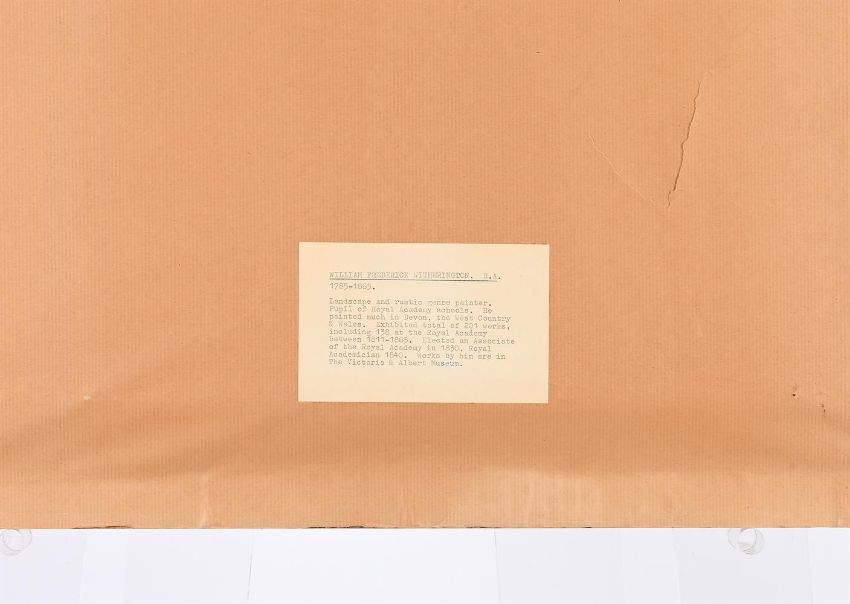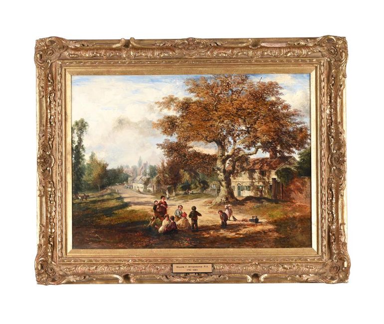 WILLIAM FREDERICK WITHERINGTON, R.A. (BRITISH 1785-1865) CHILDREN AT PLAY Oil on canvas Signed (lower right) 38 x 53cm (14¾ x 20¾ in.) Provenance: Sale, Dreweatts, Fine Art, 5 December 2018, lot 107 Please note measurements do not include the frame unless otherwise stated. Condition Report: The canvas is relined and present an uneven vanish. UV light reveals a few retouches in the foliage of the tree, and on the ground near the bottom right corner. Please note Dreweatts are not liable for damage to frames or mounts. Condition Report Disclaimer