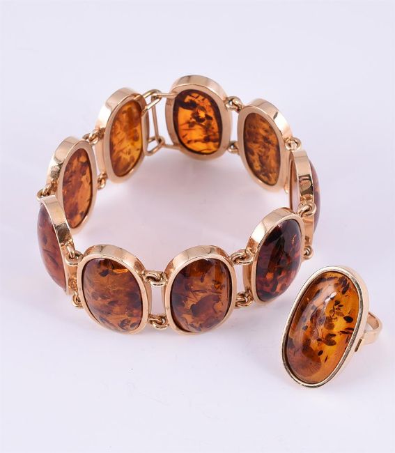 J. B. SORENSEN, A HEATED AMBER BRACELET AND RING