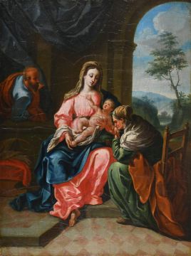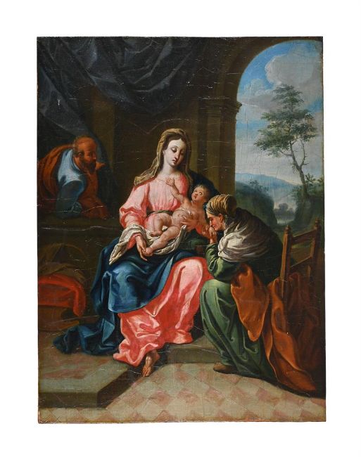 FOLLOWER OF CARLO MARATTA THE HOLY FAMILY AND SAINT ANNE Oil on panel 45 x 33.5cm (17½ x 13 in.) Unframed