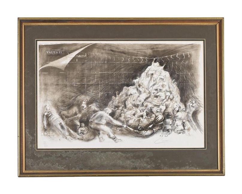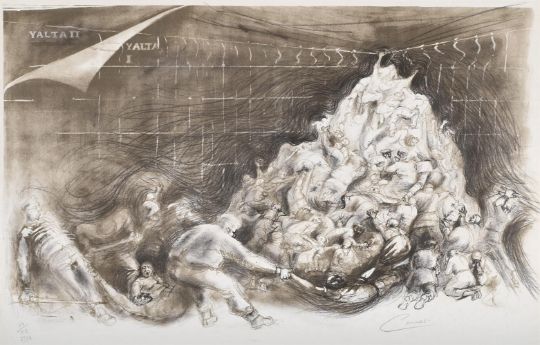 ANGELA CONNER (BRITISH B. 1935) YALTA I Lithograph, 1982 Signed in pencil, dated and numbered XI/XX 43 x 66cm (16¾ x 25 in.)Provenance: Direct from the artist's studio collection The present lithograph was produced in order to raise funds to re-create the vandalised Yalta Memorial sculpture.