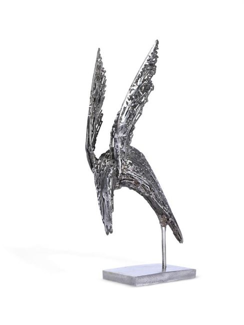 ANGELA CONNER (BRITISH B. 1935) BIRD IN FLIGHT Metal 28 x 14cm (11 x 5½ in.)Provenance: Direct from the artist's studio collection Angela Conner's interest in metal work started early on in her career when she enrolled on a welding course at British Oxygen which opened up a new set of skills which would be vital in the development of her large-scale kinetic sculptures, working in different metals. Condition Report: In good original condition, some minor surface dirt and dust.Condition Report Disclaimer